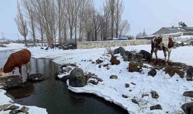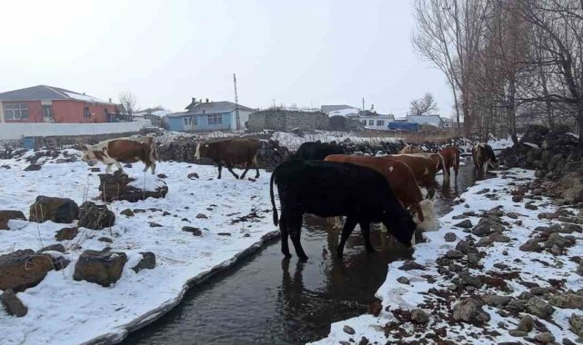 Donmuş derelerin buzlarını kıran çiftçiler ahırlarındaki hayvanları dereye getirerek hayvanların su ihtiyacını karşılıyor. Çiftçiler daha sonra hayvanlarını ahırlarına götürüyor.