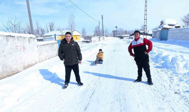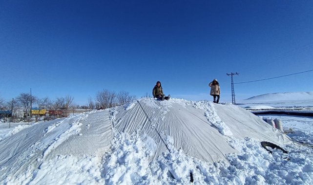 Hafta sonu tatilini fırsat bilen çocuklar, mahalle aralarında ve yokuşlarda kayarak karın keyfini doyasıya çıkardı. Soğuk havaya aldırış etmeyen çocukların neşesi, renkli görüntüler oluşturdu.
