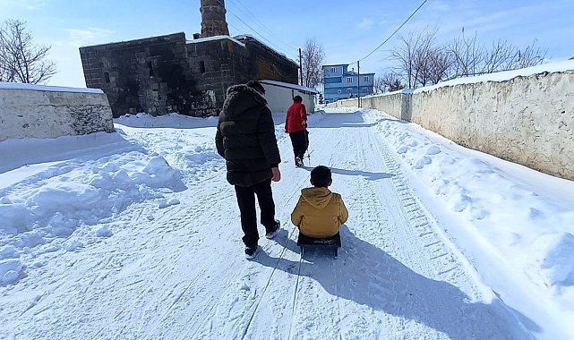 Akyaka'da kar yağışının ardından çocuklar sokaklara akın etti. Yoğun kar yağışının ardından beyaza bürünen ilçede, çocuklar kızaklarını alarak eğlenceli anlar yaşadı.