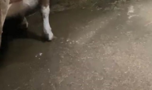 Kars'ın Akyaka ilçesinde etkili olan sağanak yağış nedeniyle dereler taştı, ahırlar sular altında kaldı.