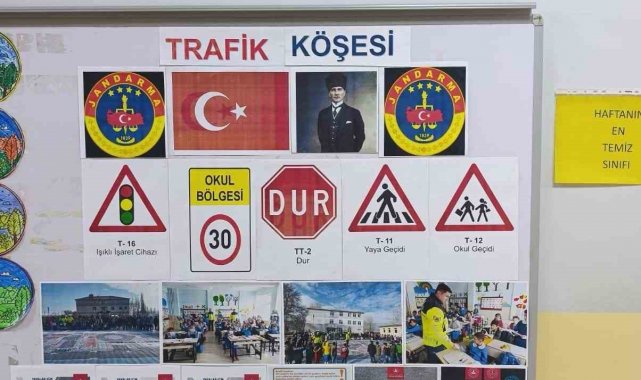 Akyaka'da ilkokula, öğrencilere trafik bilincini aşılamak amacıyla "Trafik Eğitim Köşesi" oluşturuldu.