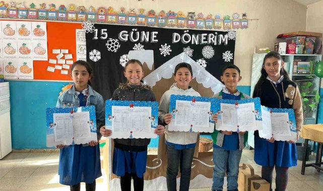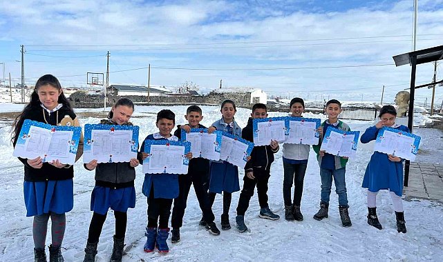 Kars'ın Akyaka ilçesine bağlı Kürekdere İlkokulu'nda yoğun geçen yarıyılın sonunda öğrenciler karnelerini öğretmenlerinin elinden aldı. Onur ve takdirname belgeleriyle karnelerini alan öğrencilerin sevinçleri yüzlerine yansıdı.