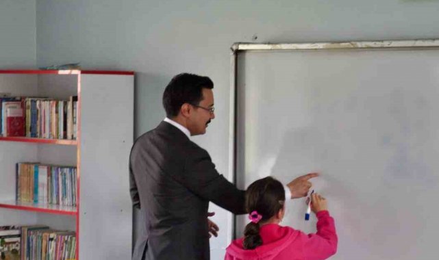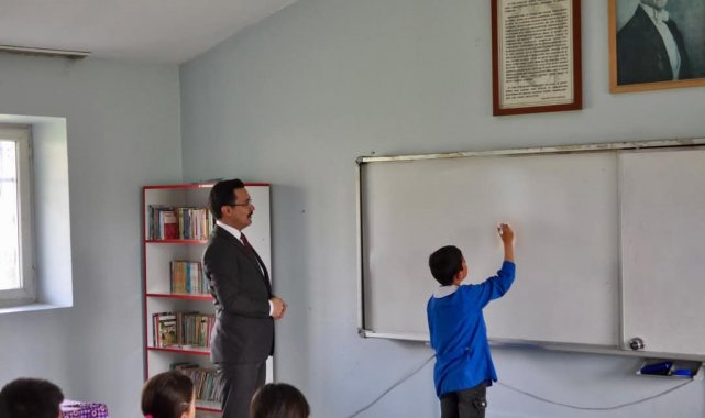 Akyaka Kaymakamı İsmail Demirtaş, köy okullarını ziyaret etmeye devam ediyor.