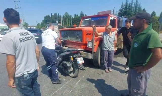 Akyazı ilçesinde seyreden R.H. idaresindeki 54 HK 442 plakalı tanker ile M.B. hakimiyetindeki 54 ACE 798 plakalı motosiklet çarpıştı. Çarpmanın etkisiyle savrulan motosiklet sürücüsü yaralandı. İhbar üzerine bölgeye sağlık ve polis ekipleri sevk edildi. Olay yerinde ilk müdahalesi yapılan yaralı, hastaneye sevk edildi.