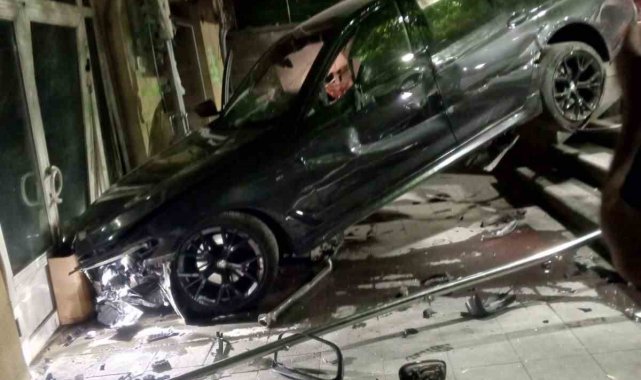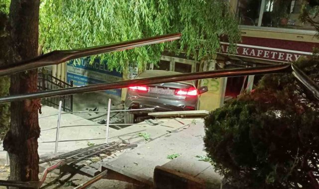 Ankara'nın Akyurt ilçesinde bir otomobil Cumhuriyet Meydanı'nda çay ocağının bulunduğu alana düştü.