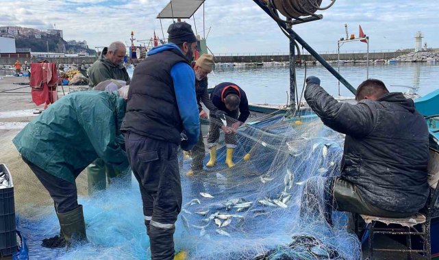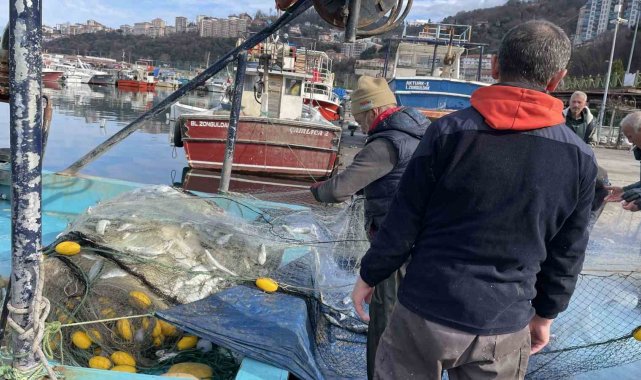 Zonguldak'ta balıkçılar avladıkları iki ton lüferle limana yanaşan balıkçılar sevinç yaşadı.