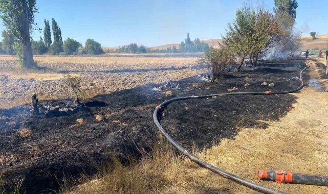 Alaca'da anız yangını: 5 dönüm arazi zarar gördü