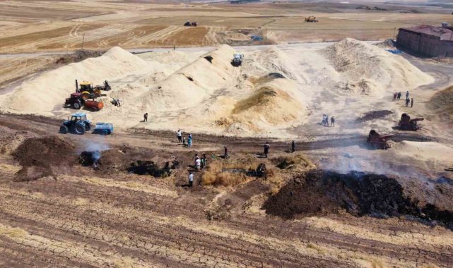 Çorum'un Alaca ilçesine bağlı Küre köyünde çıkan anız yangını, yerleşim yerlerine ve saman deposuna ulaşmadan kontrol altına alındı. Yaklaşık 70 dönüm arazinin kül olurken, yangın anı dronla görüntülendi.