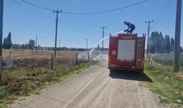 Alaca'da boş arsada yangın paniği: İtfaiye hızla kontrol altına aldı