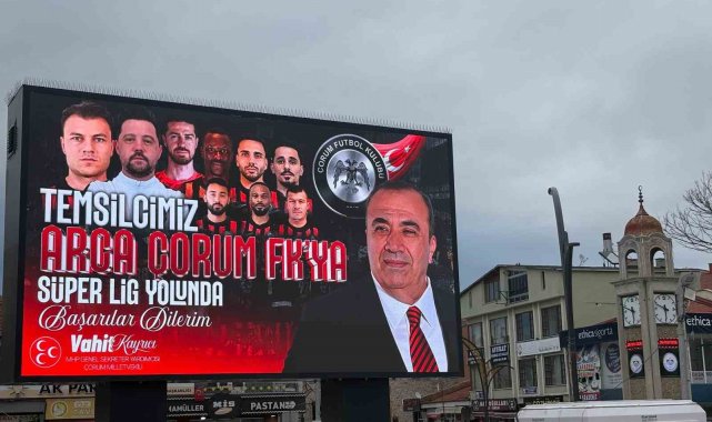 Çorum FK'nin Süper Lig yürüyüşüne bir destek de Alaca ilçesinden geldi. Alaca Belediyesi tarafından ilçe merkezindeki farklı noktalara yerleştirilen billboardlar, kırmızı-siyahlı takıma moral vermek amacıyla özel olarak hazırlanan görsellerle süslendi. Çorum FK'ye moral vermek amacıyla hazırlanan billboardlarda Alaca Belediye Başkanı Şerif Arslan ve MHP Genel Sekreter Yardımcısı, Çorum Milletvekili Vahit Kayrıcı'nın fotoğrafları yer alırken, "Temsilcimiz Arca Çorum FK'ya Süper Lig yolunda başarılar diliyorum" mesajı paylaşıldı.
