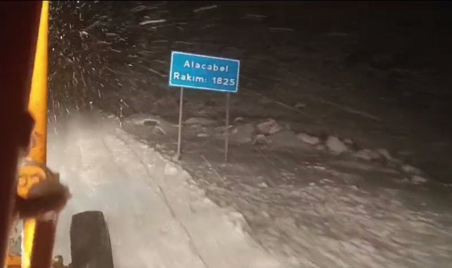 Kar yağışının başlamasıyla birlikte Karayolları ekipleri, Alacabel mevkiinde iş makineleriyle kar küreme ve tuzlama çalışmalarına başladı. Ekiplerin, yolun ulaşıma açık kalması için çalışmalarını aralıksız sürdürdüğü bildirildi.