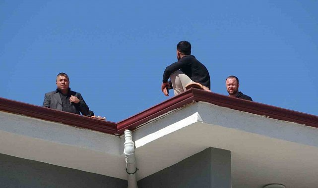 Alacağını alamadı çatıya çıktı, polis yiyecek verip indirdi