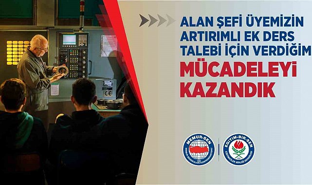 Eğitim-Bir-Sen, Ankara'da bir Mesleki ve Teknik Anadolu Lisesi'nde koordinatör ve alan şefi olarak görev yapan yüksek lisans mezunu öğretmenin ek ders ücretlerinin artırımlı ödenmesi talebinin idare tarafından 'fiilen derse girmediği' gerekçesiyle reddedilmesi üzerine konuyu yargıya taşıdı. Açılan davada mahkeme, Eğitim-Bir-Sen üyesi öğretmen lehine karar verdi.
