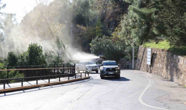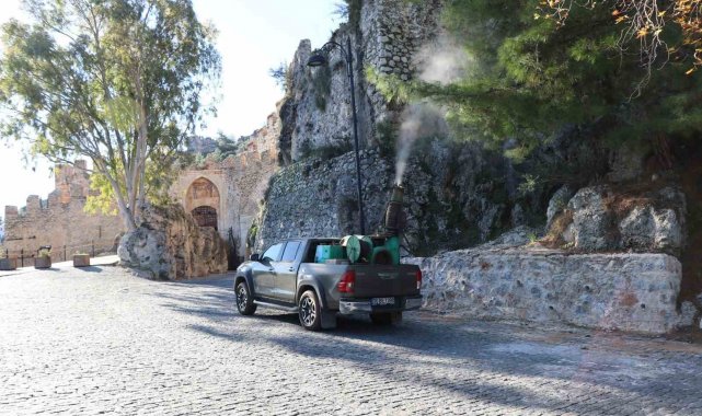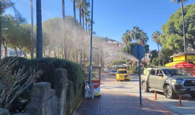 Antalya'nın Alanya ilçesinde yeşil alanlarda çam kese böceğine karşı ilaçlama çalışması yapıldı.
