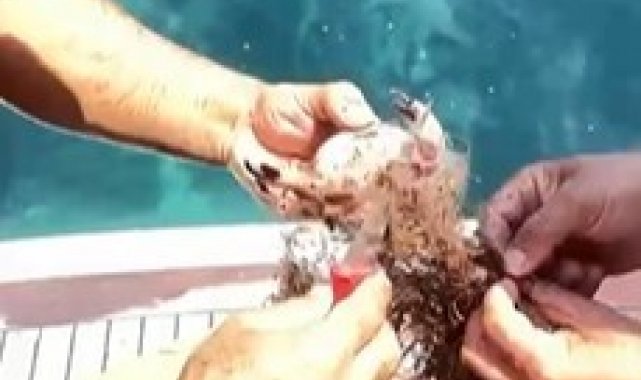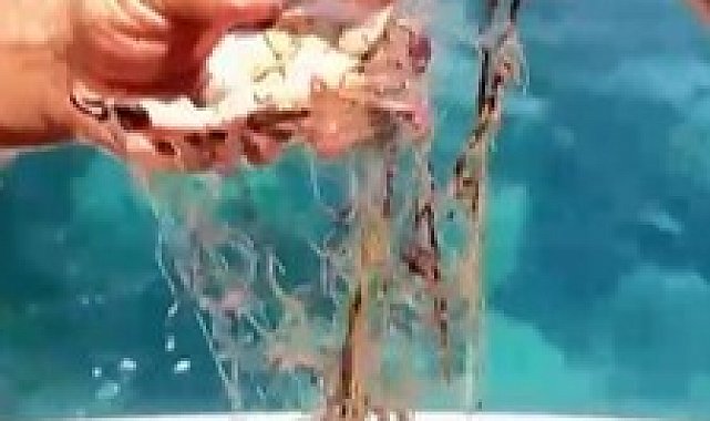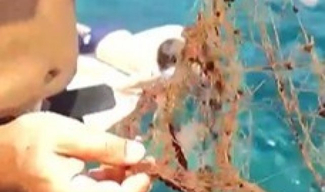 Antalya'nın Alanya ilçesi açıklarında denize bırakılan hayalet ağa takılan üç yengeç, duyarlı vatandaşlar tarafından kurtarıldı.