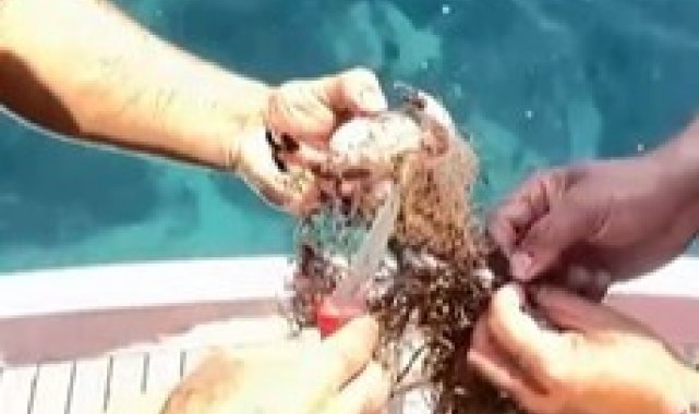Olay, sabah saatlerinde Alanya Kalesi açıklarında meydana geldi. Edinilen bilgilere göre, ilçede günübirlik gezi turu düzenleyen tekne kaptanı Turgay Meşe ve beraberindeki turistler, Alanya Kalesi açıklarında dalış yaptıkları sırada üç yengecin ağa takıldığını fark etti. Bunun üzerine harekete geçen Meşe ve turistler, yengeçleri sudan tekneye çıkararak ağları dikkatlice kesti. Kurtarılan yengeçler yeniden denize bırakılırken, o anlar cep telefonu kamerasıyla kaydedildi.