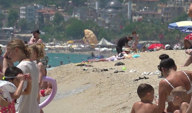 Antalya'nın Alanya ilçesinde aşırı sıcaktan bunalan yerli ve yabancı turistler sahilleri doldurdu.