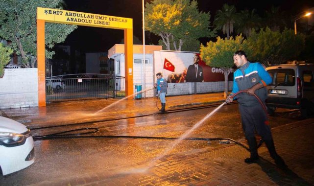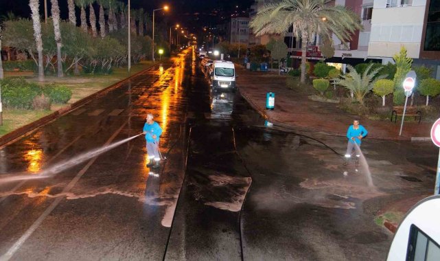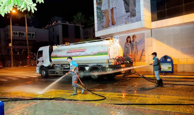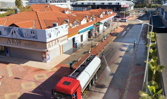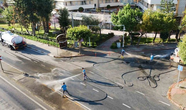 Antalya'nın Alanya Belediyesi Temizlik İşleri Müdürlüğü ekipleri, yaklaşan Ramazan Bayramı öncesinde kent genelinde kapsamlı yıkama çalışmalarına başladı.