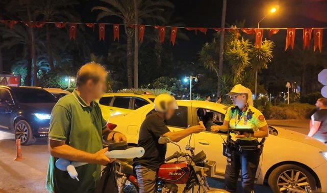 Alanya'da toplumun huzur ve güvenliği için yapılan denetimlere Alanya İlçe Emniyet Müdürlüğü'ne bağlı 9 motorize Şahin timi, 7 trafik ekibi ile birlikte Antalya Emniyet Müdürlüğü'nden görevlendirilen 28 motorize unsur da katıldı. Trafik Denetleme Şube Müdürlüğü ve Alanya Trafik Denetleme Büro Amirliği koordinesinde yapılan denetimlerde çok sayıda kural ihlali tespit edildi. Gece geç saatlere kadar devam eden uygulamalarda; 2 bin 70 araç ve sürücüsü kontrol edilirken, 2 bin 140 sürücü ve yolcuya çeşitli trafik kuralı ihlallerinden cezai işlem uygulandı. Ayrıca 74 araç trafikten men edilirken, 26 sürücünün ehliyetine geçici olarak el konuldu.