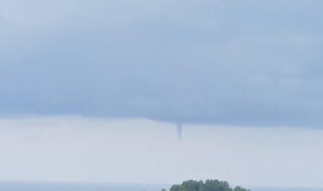 Alanya'ya sağlı Konaklı Mahallesinde sabah saatlerinde deniz üzerinde oluşup karaya ulaşmadan kısa süre sonra etkisini kaybeden hortum vatandaş tarafından cep telefonu kamerasıyla görüntülendi.