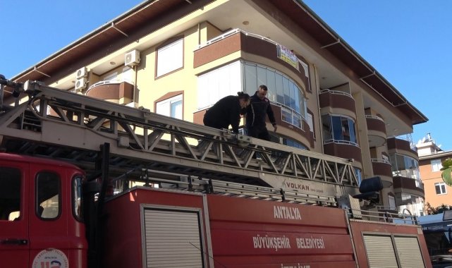 Antalya'nın Alanya ilçesinde elektrikli sobadan çıkan yangında, evde mahsur kalan vatandaşları itfaiye ekipleri merdiven yardımı ile aşağıya indirdi.