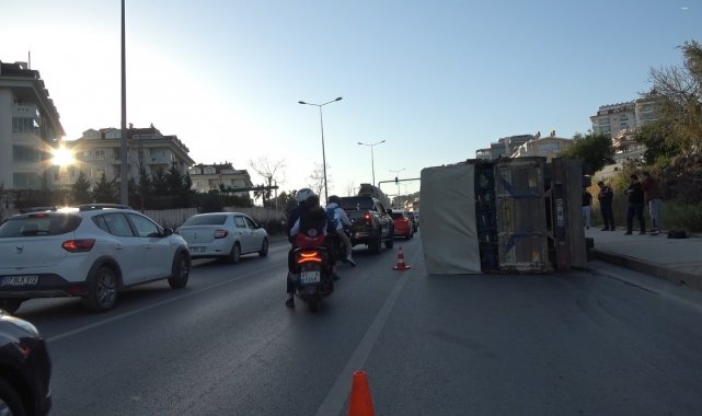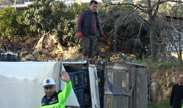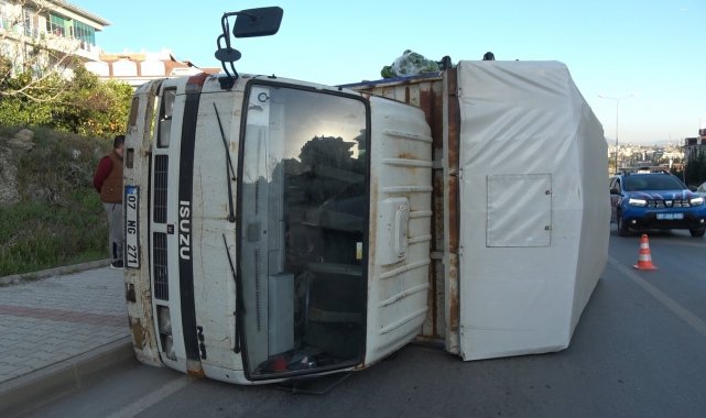 Antalya'nın Alanya ilçesinde kontrolden çıkan muz yüklü kamyonetin devrildiği kazada 1 kişi yaralandı.