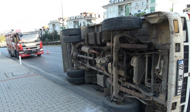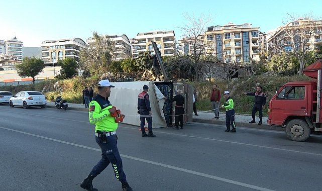 Kaza, saat 17.00 sıralarında Alanya'nın Oba Mahallesi Çevreyolu Mevlüt Çavuşoğlu Bulvarında meydana geldi. Edinilen bilgilere göre Mersin istikametinden Antalya istikametine gitmekte olan Tahsin Ç.'nin kullandığı 07 NG 271 plakalı Isuzu marka muz yüklü kamyonet, sürücünün direksiyon hakimiyetini kaybetmesi sonucu yol kenarında bulunan bordur taşına çarptıktan sonra devrildi. Çevredekilerin ihbarı üzerine olay yerine ambulans itfaiye ve jandarma ekipleri sevk edildi. Yaralı sürücü Tahsin Ç. çevredekilerin yardımı ile kamyonetten çıkarıldı. Olay yerine gelen sağlık ekiplerinin ilk müdahalesinin ardından yaralı sürücü hastaneye kaldırıldı. Kaza nedeniyle çevre yolunda uzun trafik kuyrukları meydana geldi. Kaza ile ilgili inceleme başlatıldı.