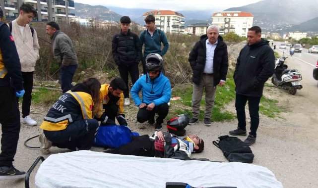 Antalya'nın Alanya ilçesinde aynı yönde seyir halinde bulunan otomobil ile motosikletin çarpıştığı kazada motosiklet sürücüsü yaralandı.