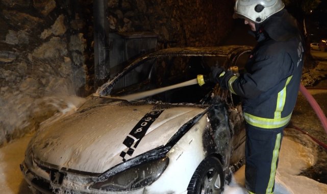 Alanya'da park halindeki otomobil alevlere teslim oldu