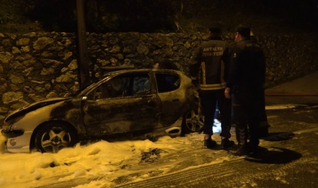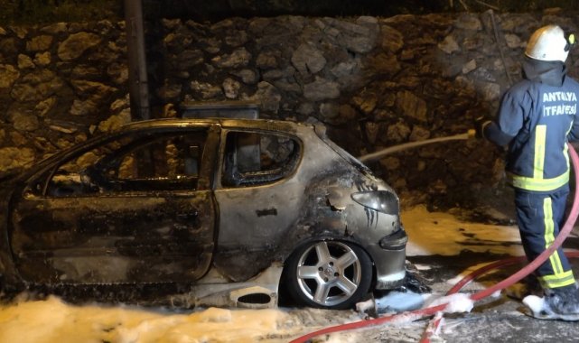 Antalya'nın Alanya ilçesinde park halindeyken alev alan otomobil kullanılamaz hale geldi.