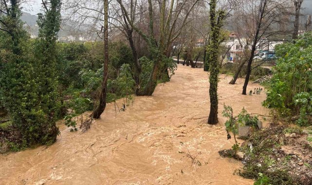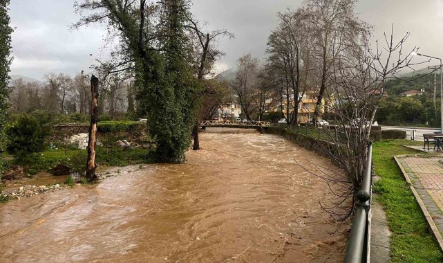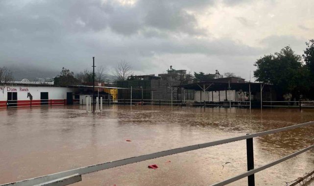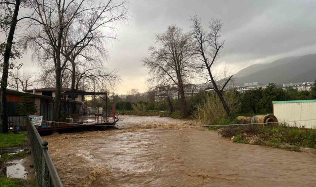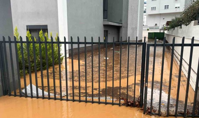 Alanya'da sağanak sebebiyle Oba Çayı taştı, binaların bahçelerini su bastı