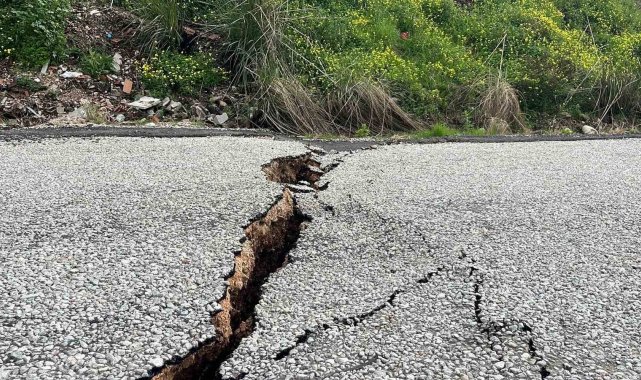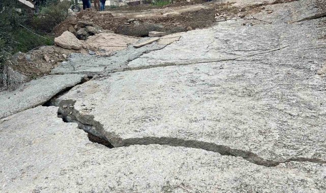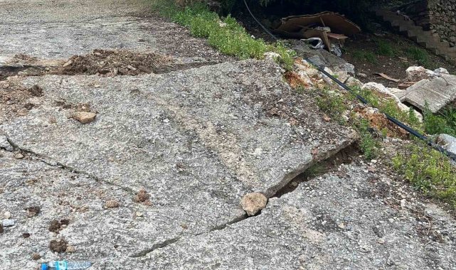 Öte yandan, çatlaklar nedeniyle bir elektrik direğinin de devrilme tehlikesi geçirdiği görüldü. Olması muhtemel bir kazanın önüne geçmek için ekipler bölgede güvenlik önlemi aldı. Yolun çökme anı ve bölgede oluşan hasar ise dron ile görüntülendi. Görüntülerde yolun bir kısmının tamamen çöktüğü ve yollarda ise çatlama olduğu anlar yer aldı.