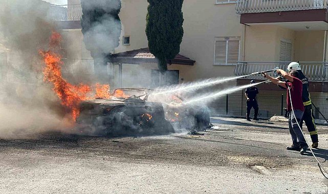 Antalya'nın Alanya ilçesinde seyir halindeyken alev alan otomobil kullanılmaz hale geldi. Olayda yaralanan olmazken, yangın çevrede kısa süreli paniğe neden oldu.