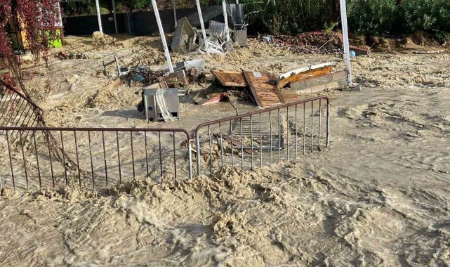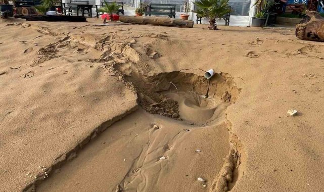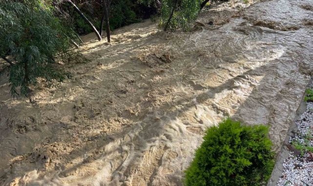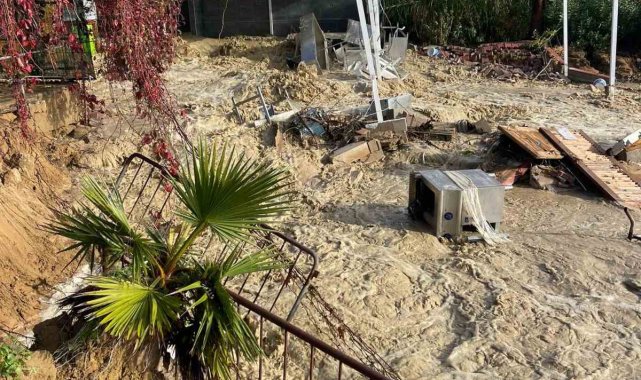 Alanya'nın İncekum Mahallesi'nde bugün öğle saatlerinde etkili olan sağanak, D-400 karayolunun kısa süre ulaşıma kapanmasına sebep oldu. Bölgedeki Ölükler Deresi de şiddetli yağmur nedeniyle taştı. Taşan derenin suları, sahilde 5 yıldızlı bir otele ait olan ve açılışa hazırlanan kafeyi adeta yerle bir etti. Kafedeki ocak, dolap gibi malzemeler suyla sürüklenerek ortalığa saçılırken, dereden taşan sular sahildeki kumları da denize taşıdı. Dereden taşan suyun sahil ve kafeye verdiği zarar cep telefonu ile görüntülendi.