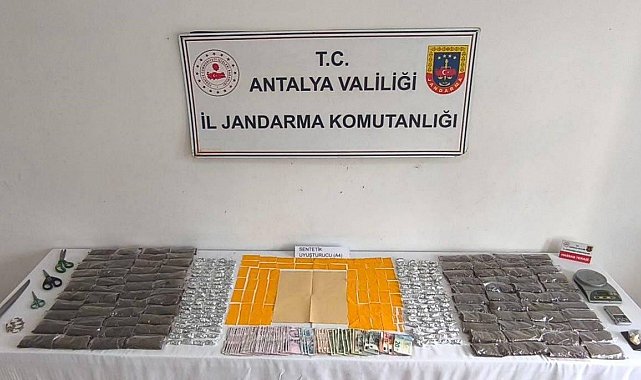 Antalya İl Jandarma Komutanlığı İstihbarat Şube Müdürlüğü koordinesinde, Alanya ilçesi Konaklı Mahallesi'nde 3 şüphelinin uyuşturucu madde ticareti yaptığı bilgisi üzerine harekete geçildi. Konaklı Jandarma Karakol Komutanlığı ekiplerinin de katılımıyla şüphelilere ait adreslere eş zamanlı operasyon düzenlendi. Şüphelilerin ikametlerinde yapılan aramalarda; 5 kilo 150 gram kannabinoid uyuşturucu maddesi, 2 adet hassas terazi, 3 adet makas, uyuşturucu satışından elde edildiği değerlendirilen 17 bin TL nakit para ele geçirildi.