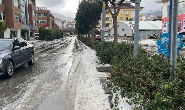 Meteoroloji 4. Bölge Müdürlüğünün sarı kod ile uyarılarda bulunduğu Alanya'da öğle saatlerinde başlayan sağanak yağmur yerini doluya bıraktı. Dolu nedeniyle park ve bahçeler ile sokaklar kısa sürede beyaza bürünürken, turistik ilçenin bazı cadde ve sokaklarında oluşan su birikintileri sürücülere zor anlar yaşattı. Birçok araç, yollarda ilerlemekte güçlük çekti. Ayrıca bir otomobil seyir halinde iken aşırı yağıştan dolayı yolda mahsur kaldı.