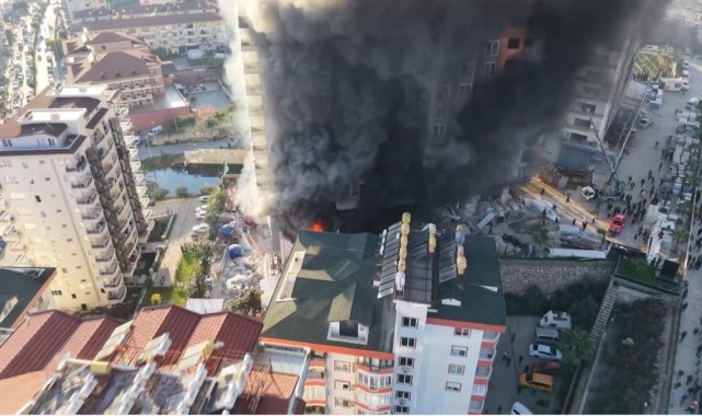 Antalya'nın Alanya ilçesinde otel inşaatında çıkan yangını söndürme çalışmaları devam ediyor. Alanya Kaymakamı Fatih Ürkmezer, "İlk aldığımız bilgi en başta 4 işçi vardı. Şu anda bütün arkadaşların dışarıda olduğu bilgisini aldık ve 3 kişi yoğun duman sebebiyle hastaneye kaldırıldı. İçeride şu anda kimse yok" dedi. Yangının başladığı anlar ise dron kamerasına yansıdı.