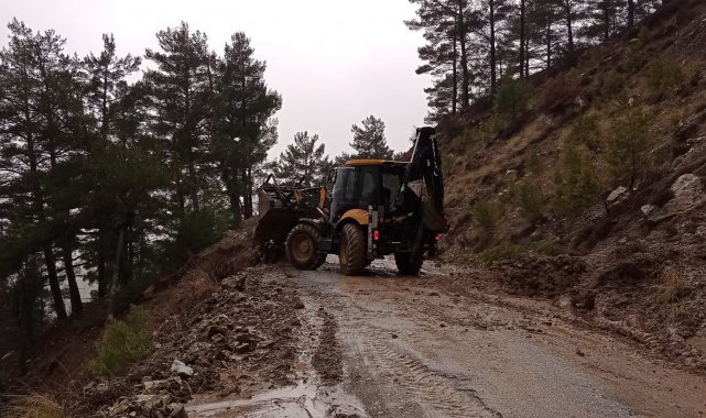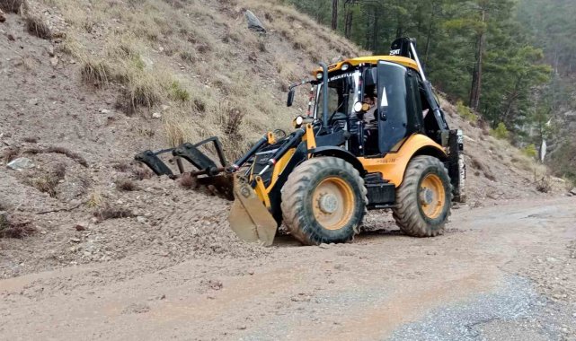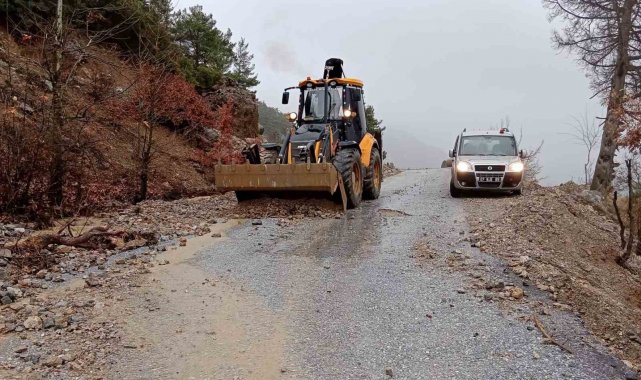 Antalya Büyükşehir Belediyesi ekipleri, olumsuz hava şartlarının etkisini sürdürdüğü Alanya kırsalında yolları açık tutmak için çalışıyor.