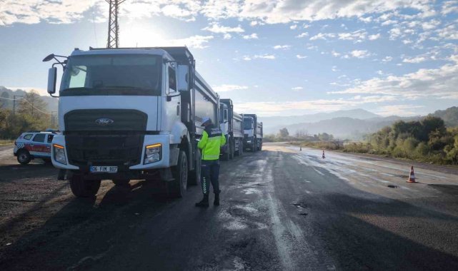 Zonguldak'ın Alaplı ilçesinde jandarma ekipleri tarafından tır ve kamyonlara yönelik kontroller yapıldı.