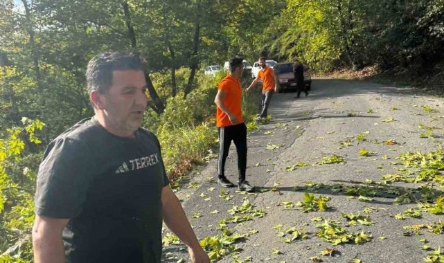 Alaplı'da yola devrilen ağaç, vatandaşlar tarafından kaldırıldı