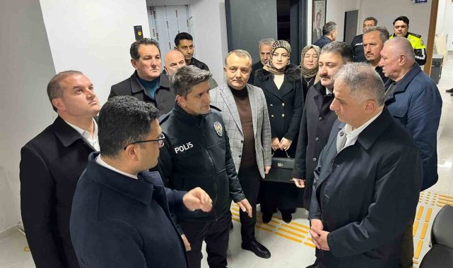 Yeni emniyet binasında incelemelerde bulunan heyet, Emniyet Müdür Vekili Baki Acar'a hayırlı olsun ziyaretinde bulunarak görevinde başarılar diledi.