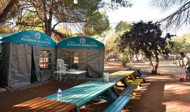 Manisa'nın Alaşehir Belediyesi, çalışanları için Didim'de ücretsiz tatil kampı organize etti. Belediye tarafından kurulan kamp alanında çalışanlar dönüşümlü olarak 3 gün süreyle tatil yapma imkanı buluyor.