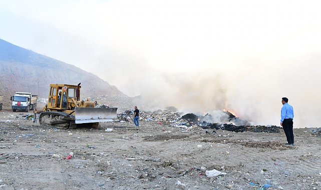 Alaşehir'de çöplük yangını: 1 itfaiye eri dumandan etkilendi