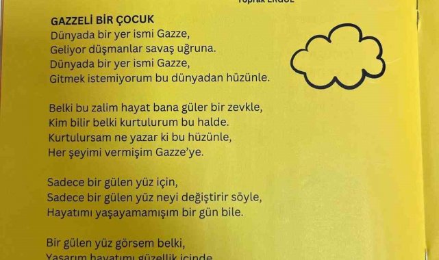 Manisa'nın Alaşehir ilçesinde Bilim ve Sanat Merkezi öğrencileri tarafından hazırlanan Filistin temalı "Düşten Beri" dergisinin tanıtım programında, öğrencilerin kaleme aldığı şiirler okunarak Filistinli çocuklar için güçlü vicdan mesajları verildi.