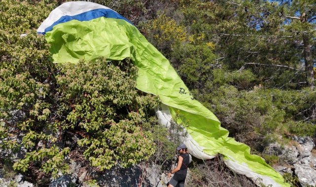 Alçak uçuş yaparken paraşütü makilere takıldı, düştüğü yerde mahsur kaldı