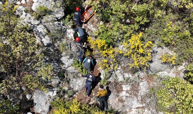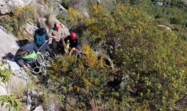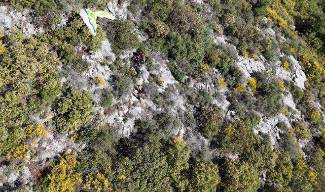 Antalya'nın Alanya ilçesinde paraşütle havalanan bir kişi, alçak uçuş yaptığı esnada makilik alana paraşütünün takılması sonucu düşerek yaralandı. Dağda mahsur kalan kişi, ekiplerin başarılı operasyonuyla kurtarılırken, o anlar dron kamerası ile görüntülendi.