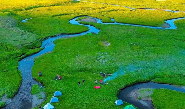 Alendeşt yaylası, menderesleri ve sarı çiçekleriyle büyülüyor