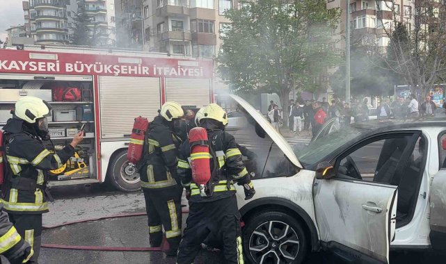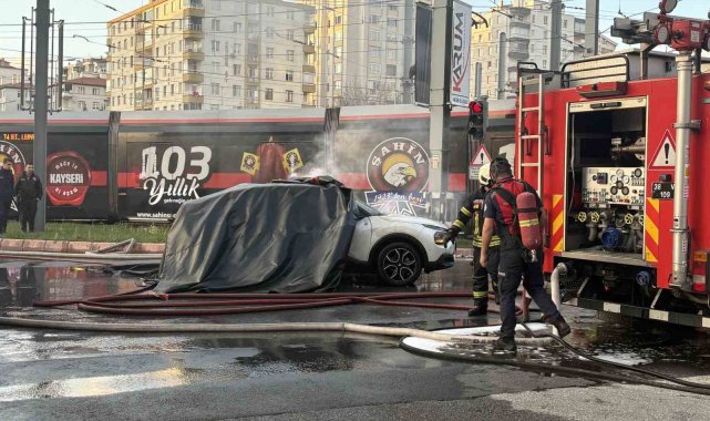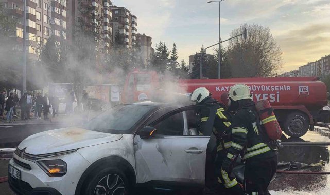 Kayseri'nin Melikgazi ilçesinde alev alan elektrikli otomobil, ekiplerin yangın battaniyesiyle yaptığı müdahaleyle büyümeden söndürüldü.
