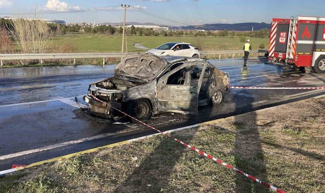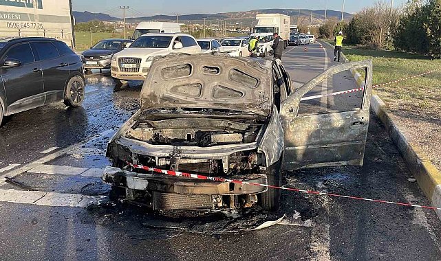 Alev alan otomobil kullanılamaz hale geldi