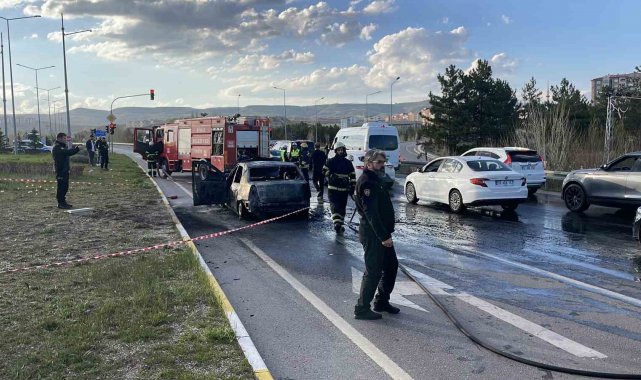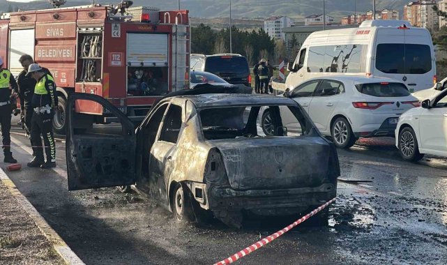 Sivas'ta seyri halindeki otomobilde çıkan yangın paniğe neden oldu.